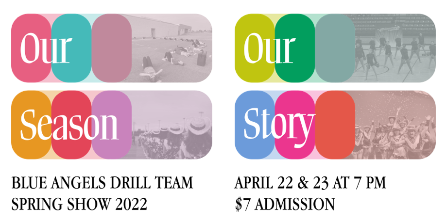 For 2022's Spring Show, I leaned into developing a full design system. This show helped me realize that I am a "systems thinker" in general, but also in design projects. For Our Season, Our Story I continued our use of a variety of colors, and brought in photos from the year. This led to some really great mixes of color and photo across different applications, notably in producing tons of social media assets. The three-part marquee let the poster be revealed to be just one part of the marquee in the lobby, and the format led to some fun animations in the show video elements.